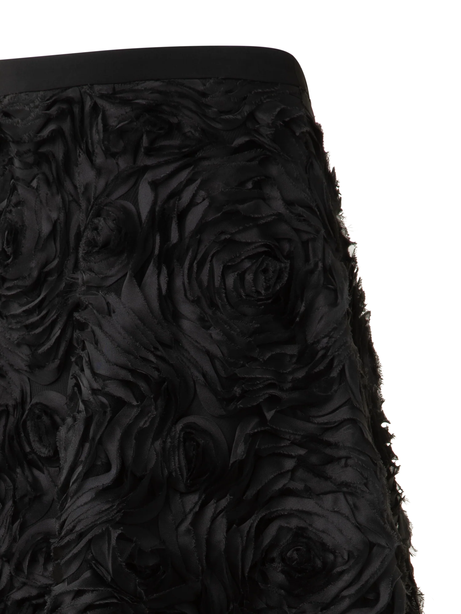 A-Line Midi Skirt with 3D Carnation Embroidery