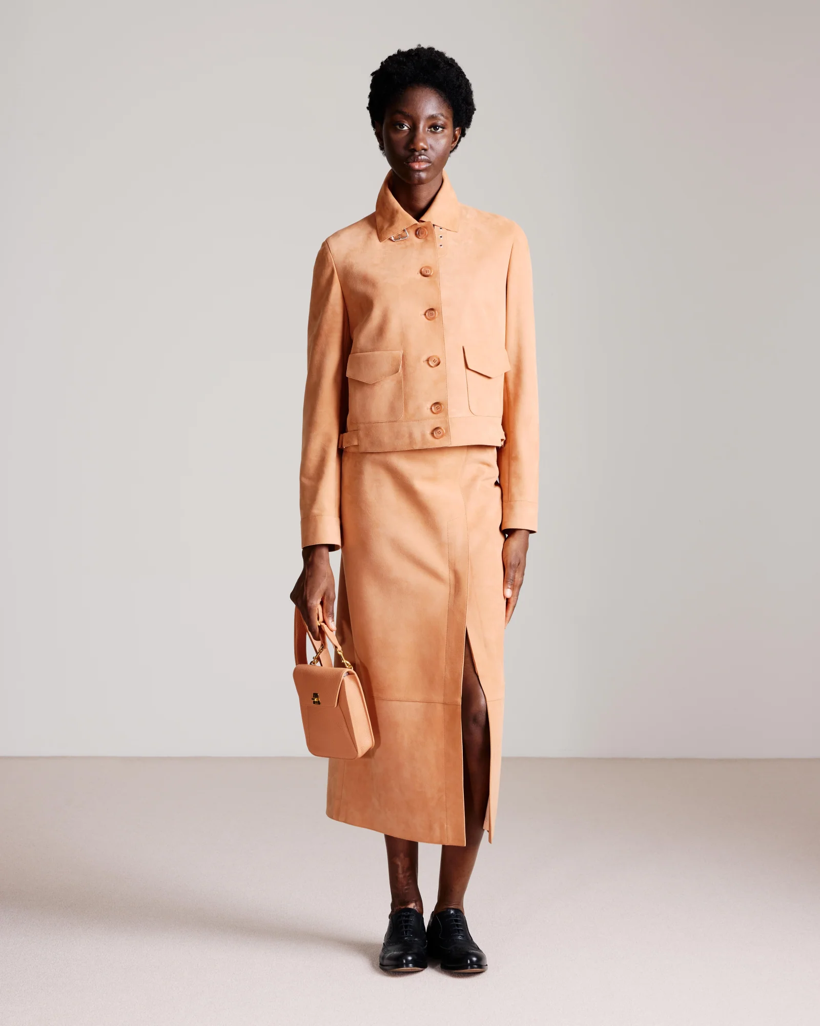 The ANOUK Mini Messenger Bag in deer-structured calf leather features: