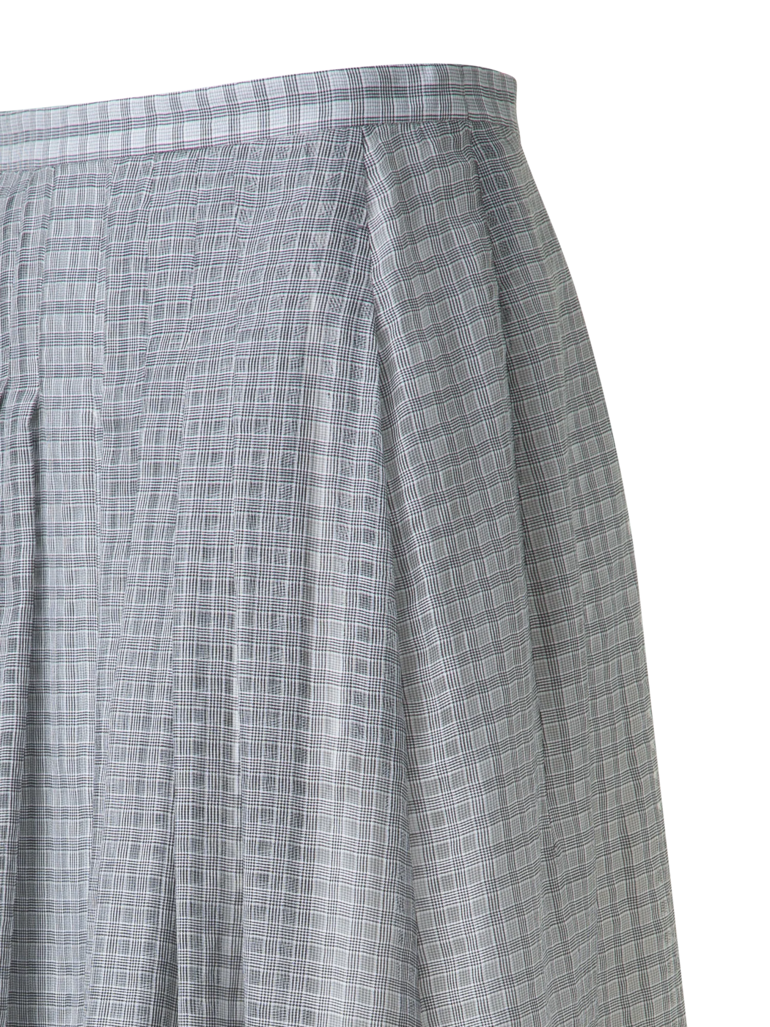 This flared midi skirt is cut from airy cotton silk voile, patterned with a crisp black-ecru small plaid that lends graphic rhythm to the silhouette. The soft volume and light structure enhance its effortless elegance, while the midi length keeps it versatile. Style it with the coordinating blouse for a striking, yet wearable statement look.