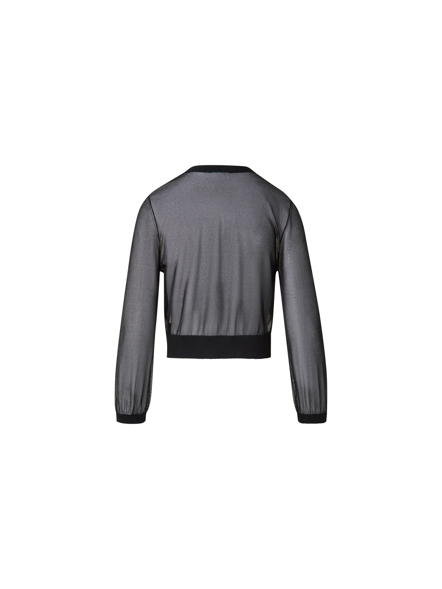 Sheer Cropped Knit Cardigan with Volume Sleeves