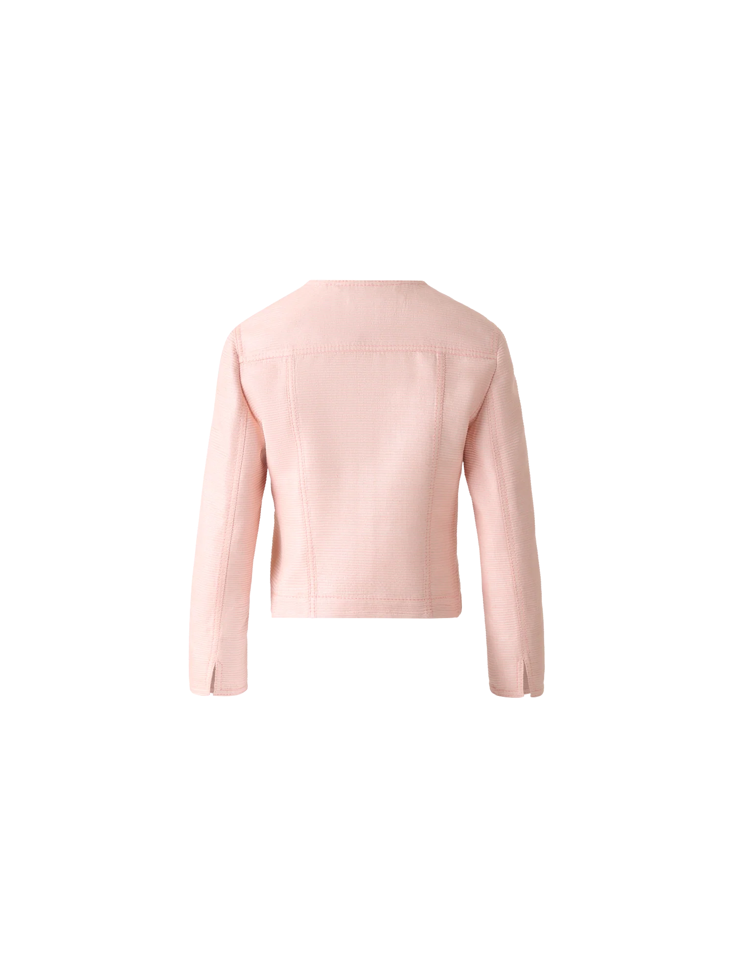 This short jacket, crafted from Indian silk ottoman, features a pronounced ribbed texture that offers a smooth, polished appearance with a subtle sheen. The fitted silhouette is paired with a crew neck and a minimalist single-hook closure. Bracelet sleeves complete the design. Paired with a matching dress it makes a great choice for an occasion wear.